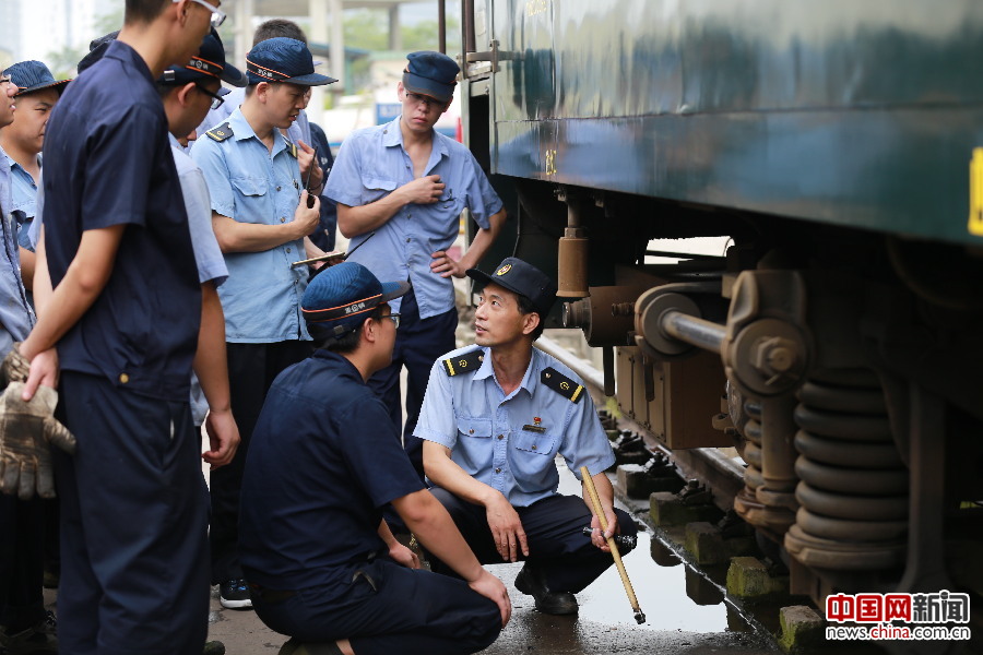 2017年06月23日,重庆,重庆北运用车间职工进行列车检修培训。