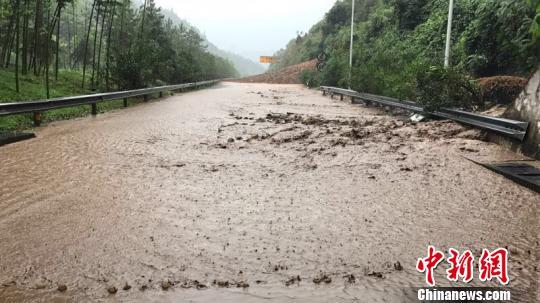 暴雨造成杭瑞高速景婺黄段252公里、263公里等多处路段发生泥石流、滑坡等灾害。 钟欣 摄