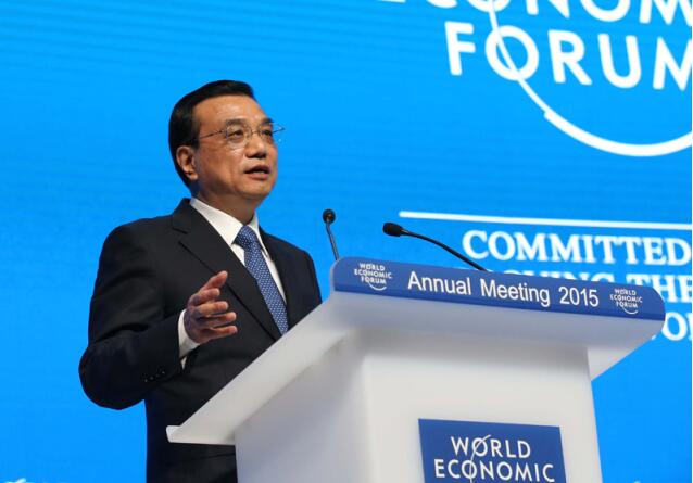 2015年1月21日,李克强总理在瑞士达沃斯举行的世界经济论坛全会发表特别致辞并回答提问。