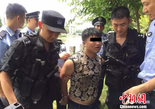嫌疑人行凶后企图跳江逃跑,被迅速赶到现场的民警包围并抓获。桂林警方 摄