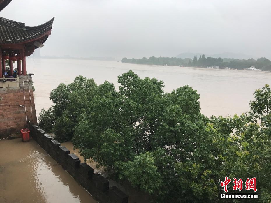 6月25日,由于连续强降雨,浙江兰溪水位猛涨。据25日17时实测兰江水位32.00米,超保证水位1.00米(警戒28.00米、保证31.00米,黄海标高),预报兰江洪峰将于26日凌晨2时到达,洪峰水位32.20米,预测洪峰流量14200立方米每秒。当地已启动防汛一级应急响应,发布今年第一号人员转移令。中新社记者 奚金燕 摄