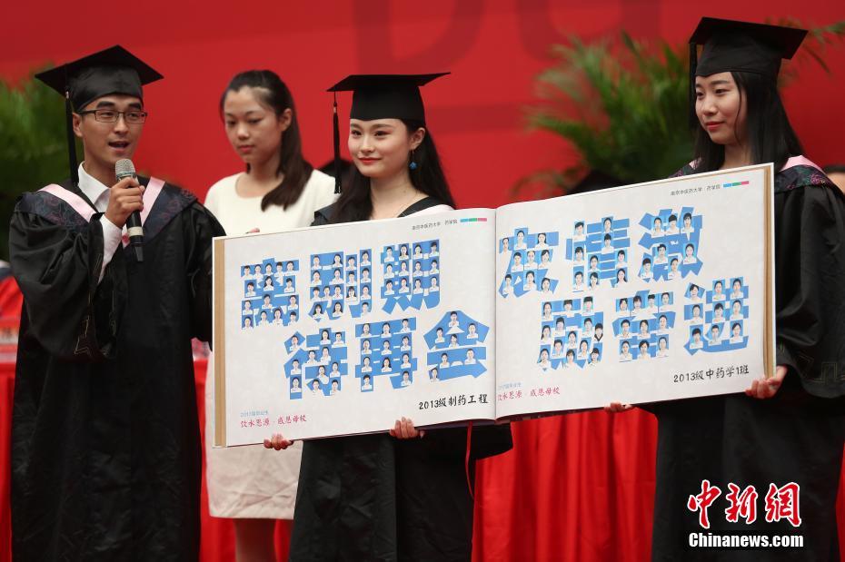 毕业生向母校赠送用他们的证件照组成的礼物。 中新社记者 泱波摄