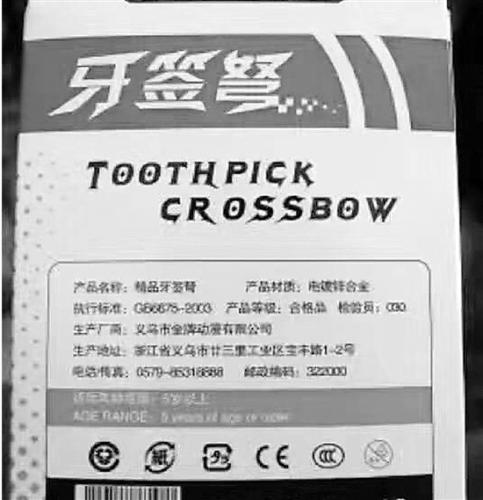 此前网络上流传一张包装完整的牙签弩玩具照片,包装背面显示生产厂商为“义乌市金牌动漫有限公司”,厂址位于义乌市廿三里工业区宝丰路1-2号。这会不会就是源头所在呢,日前,记者来到义乌进行实地调查。