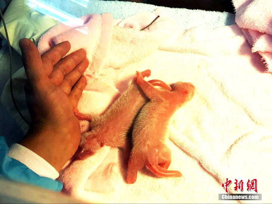 这对新生大熊猫是成都2017年首对龙凤胎大熊猫宝宝。 钟欣摄