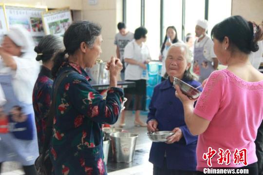 图为安置点受灾群众在用餐。
