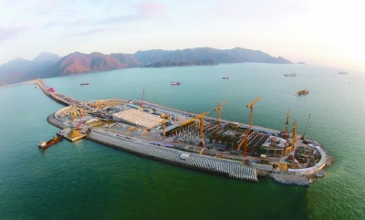 2017年即将通车的港珠澳大桥跨过珠海,连接澳门半岛,通向香港大屿山。图为港珠澳大桥东人工岛项目施工现场。资料图片