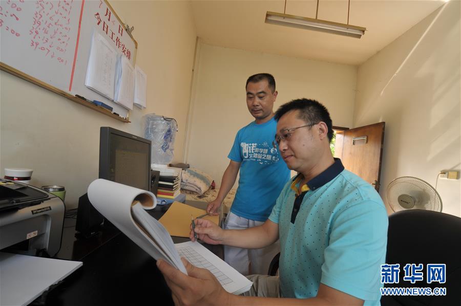 工作人员在长沙市水文局值班室内严密监控湘江水情变化(7月4日摄)。
