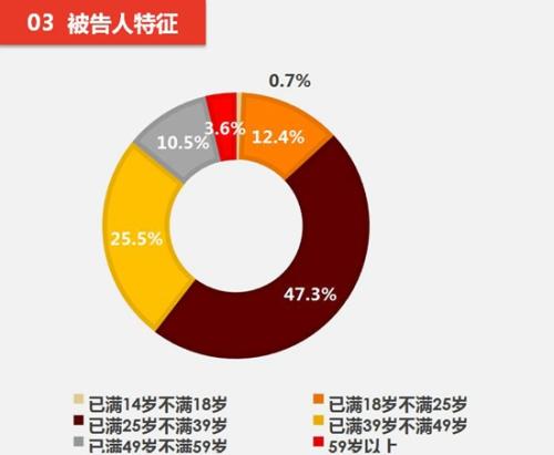 报告显示,被告人年龄主要分布在25岁至39岁之间,人数占比为47.3%。