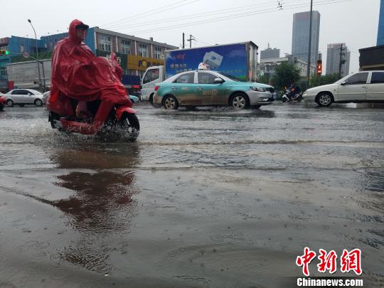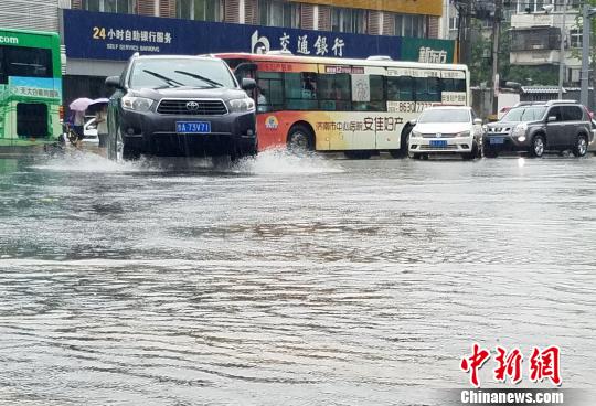 由于雨势过大,济南市区地势低洼的地段出现大面积积水。 秋歌摄