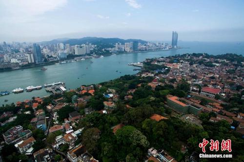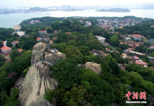 资料图:鸟瞰鼓浪屿全景,红砖古厝、蔚为壮观。王东明 摄