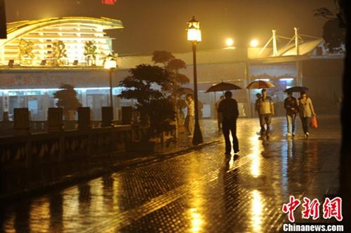 资料图:阵雨中的鼓浪屿夜景。中新社发 郑祚声 摄