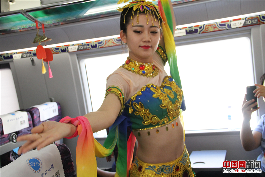 乘务员为旅客献上敦煌舞蹈。中国网记者 唐佳蕾 摄