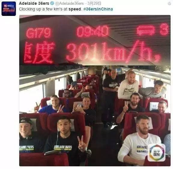 2016年4月,澳大利亚的球队“阿德莱德36人队”来中国参加2016年中澳篮球争霸赛。他们纷纷被300公里/小时的高铁时速震惊了,然后球队全员兴奋地比出剪刀手跟时速显示牌合影留念……