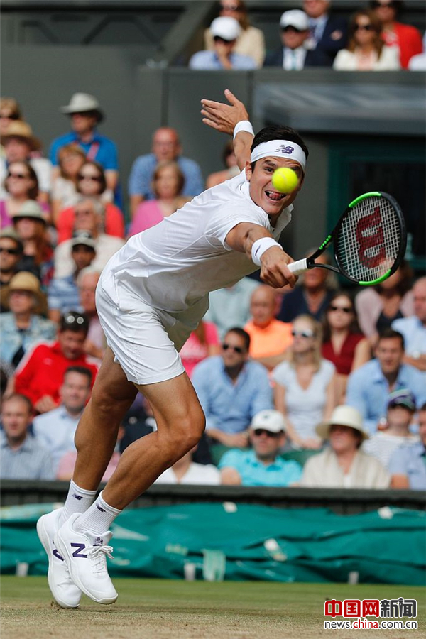 2017年7月12日,英国伦敦,2017温布尔顿网球公开赛男单1/4决赛,费德勒3-0拉奥尼奇。视觉中国