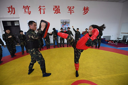 该连走廊的墙上,挂着一张训练计划表,女兵们每天的训练内容都被安排得满满当当。除体能基础训练外,还有射击、搏击、攀登等技能课目和侦察、情报收集等内容,训练课目与男兵一样。每天都能看到女兵追着男兵训、女兵比着男兵练的激烈场景。