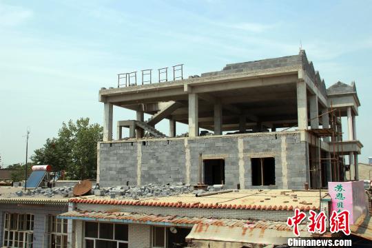 在建楼体为三层,面东背西而立,主体框架已落成。 于俊亮摄