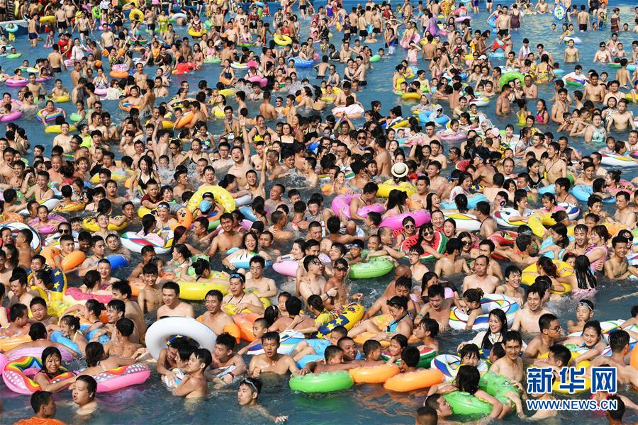 7月16日,市民和游客在重庆洋人街水上乐园戏水纳凉。