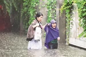 9时许,记者在同志街与明德路南胡同交会处附近看到,低洼路段再次出现严重积水,犹如一条小河横在马路中间,将同志街由南至北和由北至南相对行驶的两排车流生生阻断,长长的车流在马路上排着队等待积水退去,362路等公交车上的乘客纷纷下车绕路步行离开。“顶着大雨上班的都是工作狂,这得需要多大的勇气啊。”市民吴先生幽默地说,“原本20分的路开了一个多小时才到单位,紧张得手心和后背全都是汗。”