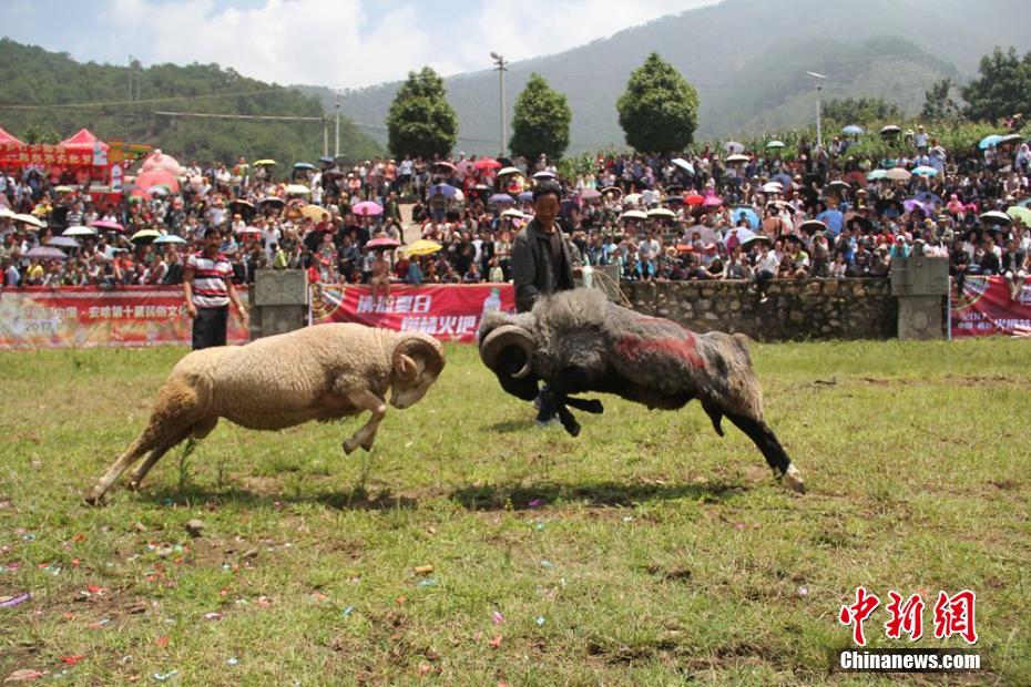 7月17日,一年一度的凉山火把节隆重开幕。当日,在四川省凉山州西昌市安哈镇举行的斗牛斗羊大赛吸引了众多当地群众和外地旅游者目光,火爆刺激的比赛引得众人纷纷拍手叫好。王哲摄