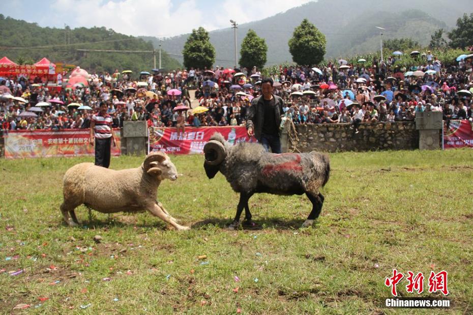 2017凉山火把节开幕 斗牛斗羊大赛引众人围观