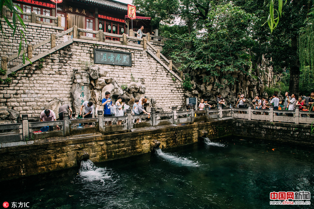 2017年7月16日,来过山东济南的人大概都知道济南“七十二名泉”,位于济南解放阁下的黑虎泉是济南七十二名泉之一,由泉源和泉池两部分组成。在这里,络绎不绝的人群与泉构筑了一道城市独特的风景线,来过此地的外地人都羡慕着济南人这样的生活方式。济南人与离不开的泉水。王阳/东方IC