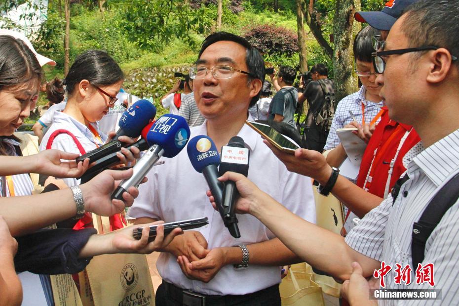 7月19日,两岸记者四川行联合采访团探访中国大熊猫保护研究中心雅安碧峰峡基地,中国大熊猫保护研究中心常务副主任张和民接受记者采访。据介绍,大陆赠台大熊猫“团团”“圆圆”赴台前,曾在此基地生活过。张和民表示,碧峰峡基地与台北市立动物园的交流合作密切,今年3月基地的大熊猫专家赴台北协助“圆圆”进行人工授精,可惜近日发现它流产了。他说,“圆圆”现在12岁,还有大约7年的生育期,希望可以再诞下大熊猫宝宝。中新社记者陈小愿 摄