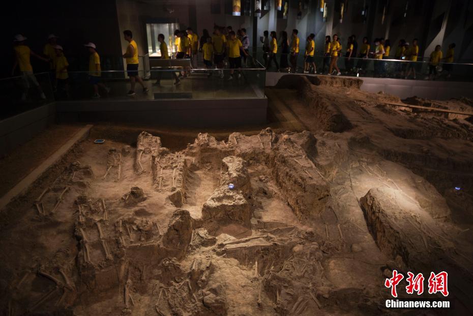 7月19日,来自美国、加拿大、德国、西班牙等十几个国家和地区的近千名华裔师生走进侵华日军南京大屠杀遇难同胞纪念馆,向南京大屠杀死难者敬献花圈,缅怀逝者。图为华裔师生们参观“万人坑”遗址。中新社记者泱波 摄