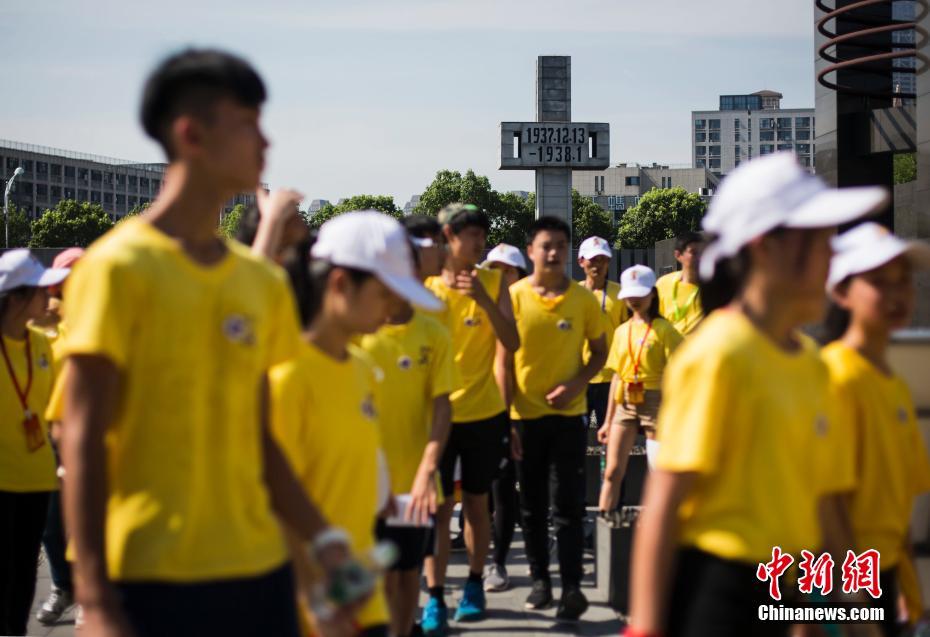 7月19日,来自美国、加拿大、德国、西班牙等十几个国家和地区的近千名华裔师生走进侵华日军南京大屠杀遇难同胞纪念馆,向南京大屠杀死难者敬献花圈,缅怀逝者。中新社记者泱波 摄