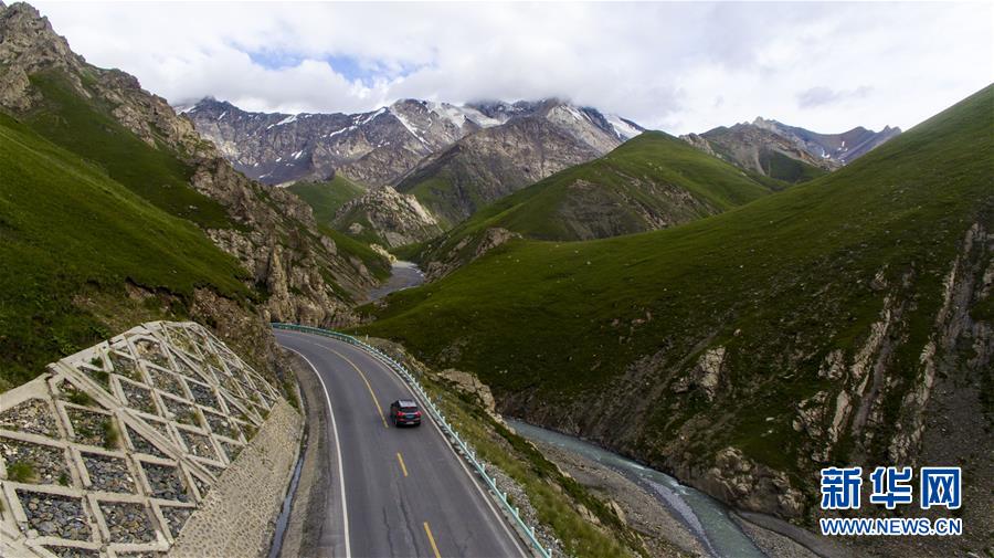 车辆行驶在独库公路上(7月15日摄)。横亘崇山峻岭、穿越深山峡谷的天山公路,北起新疆石油重镇独山子,南至丝路古镇库车,被称为新疆最美公路,是连接南北疆的重要通道。在独库公路修建之前,从独山子到库车需要绕道乌鲁木齐走1000多公里,独库公路开通后省去近一半的路程。它的贯通,堪称中国公路建设史上的一座丰碑。新华社记者江文耀 摄