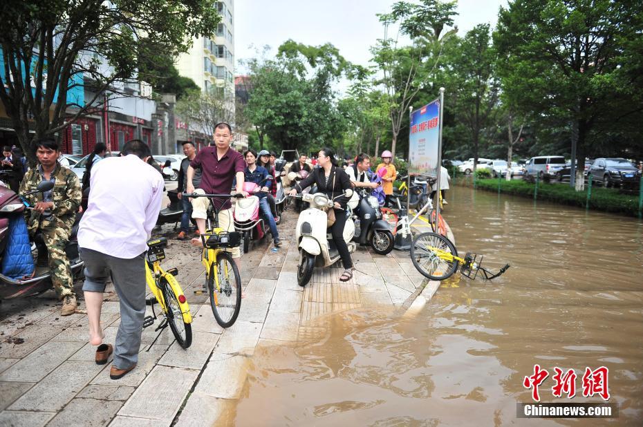 昆明普降暴雨 市区一夜变泽国