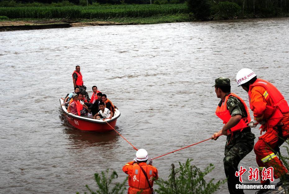 救援人员转移受困群众。文/中新社记者 王舒 解培华图/中新社记者 王舒