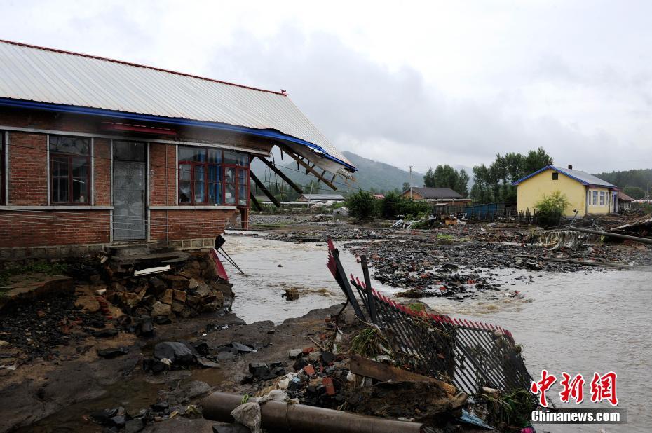 当地房屋被大水冲毁。文/中新社记者 王舒 解培华图/中新社记者 王舒