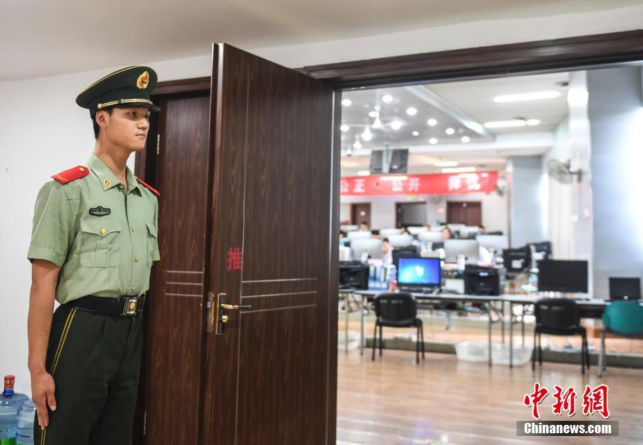 武警值守高考录取现场。 中新社记者 张勇 摄