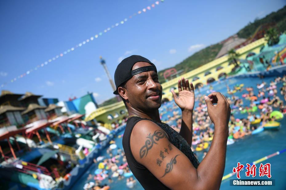 7月24日,重庆持续高温天气,在洋人街工作的埃塞俄比亚小伙sami坚持在自己岗位上进行舞蹈演出。据悉,27岁的埃塞俄比亚小伙sami在重庆洋人街已经工作快10年,每天的工作就是给游客带来舞蹈表演。他在和别人交流时还能说着一口流利的普通话,手臂上还纹着“我爱中国”的字样。sami说:“在重庆工作多年,自己觉得今年比往年都热,演出工作又是在下午最热时段,现在自己在洋人街表演团队里又是一个重要角色,不能随意休假,所以个人情绪经常会受到高温天气的影响,希望公司能够为自己适当放高温假。”陈超摄
