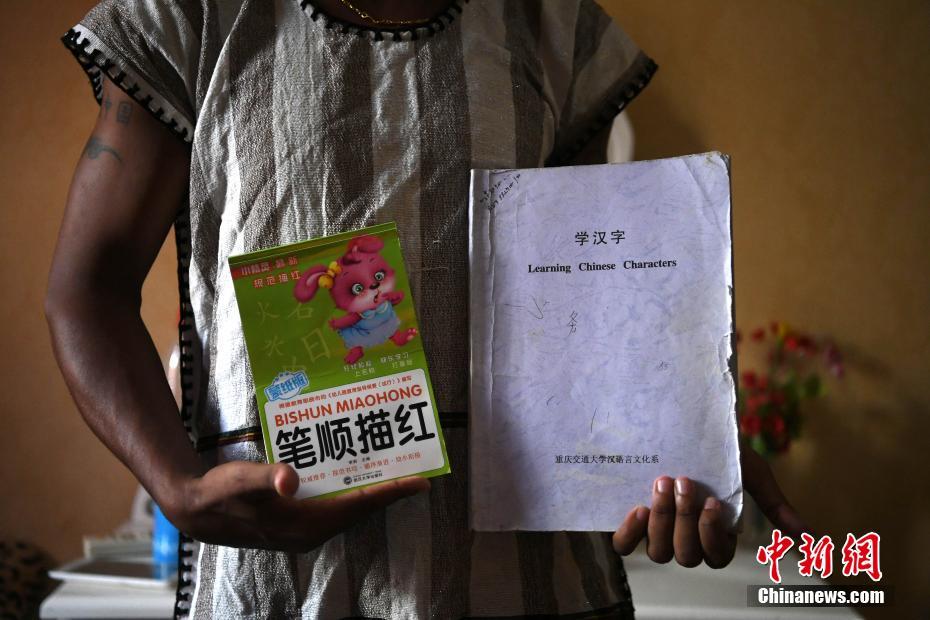 埃塞俄比亚小伙展示自己正在学习中文的教科书。陈超 摄