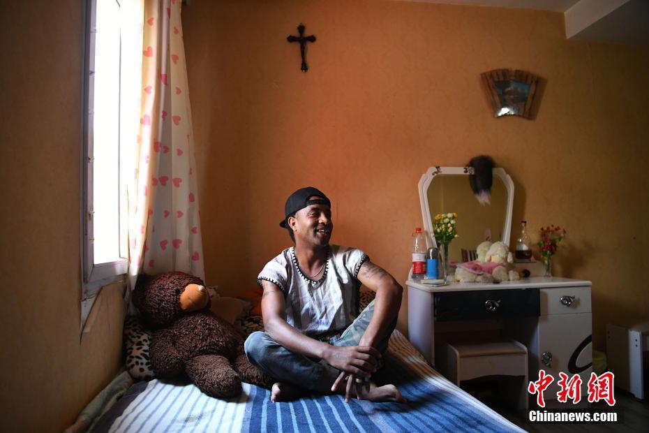 埃塞俄比亚小伙工作之余的时间一直呆在自己房间里纳凉。陈超摄