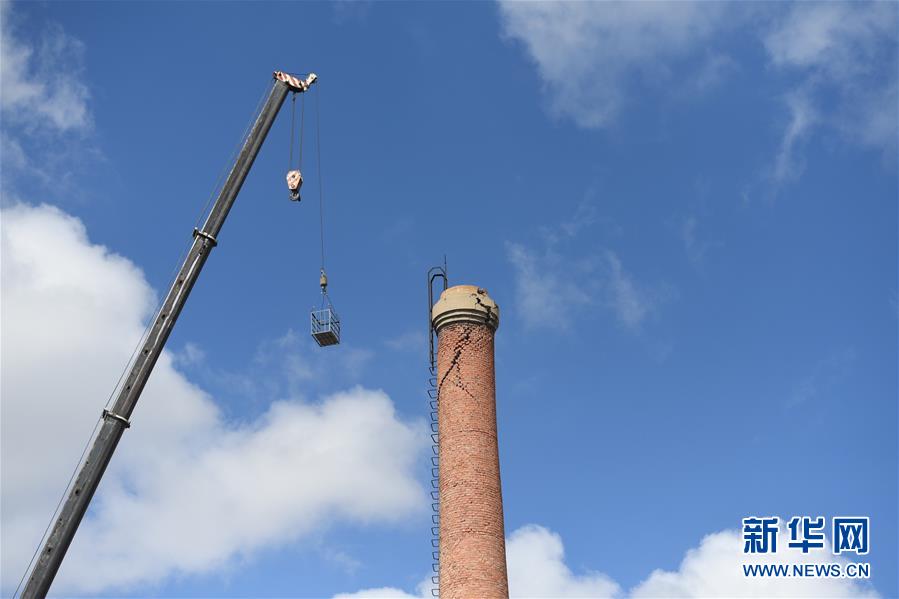 吉林松原对地震损坏烟囱进行拆除