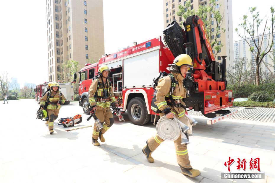 浙江消防模拟高层扑救训练 负重70斤爬20楼