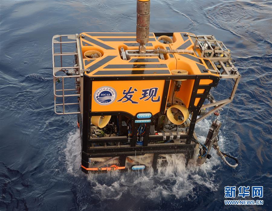 7月26日,缆控式遥控无人潜水器“发现”号与自治式水下机器人“探索”号完成协同作业,被母船吊出水面。当日,我国新一代远洋综合科考船“科学”号搭载的缆控式遥控无人潜水器“发现”号与自治式水下机器人“探索”号在南海北部实现深海交会拍摄,这也是我国首次实现上述两类水下机器人交会拍摄。新华社记者张旭东 摄