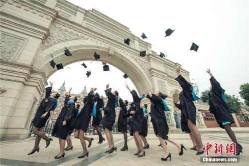 资料图:毕业生们在校门高呼“我们毕业了”。莫小布 摄