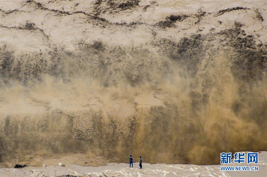 这是7月27日拍摄的涨水后的壶口瀑布。 7月25至26日,黄河中游部分地区出现强降雨,位于晋陕交界处的黄河壶口瀑布于27日迎来今年最大洪峰。 新华社发(张蕴强 摄)