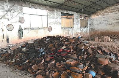 河北高邑一家小铸造厂的半成品锅堆放点,一片杂乱。本报记者 寇江泽摄