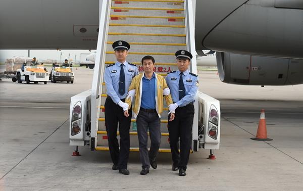 2017年7月29日,在中央反腐败协调小组国际追逃追赃工作办公室的统筹协调下,在格林纳达等加勒比国家的协作配合下,经中央有关部门和江苏省追逃办密切合作,第92号“百名红通人员”任标回国投案。这是第42名归案的“百名红通人员”。(中央纪委监察部网站张祎鑫 摄)