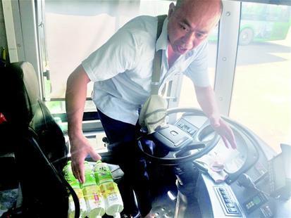 高师傅说,这些天实在是太热了,阳光从前车窗直射到黑色座椅上,坐上去屁股烫得发疼,他用塑料瓶装上凉水,先浸泡在水中,等到发车时就捞出来,垫在座椅上。“虽说稍微有点硌人,但是凉快多了。”高师傅说。