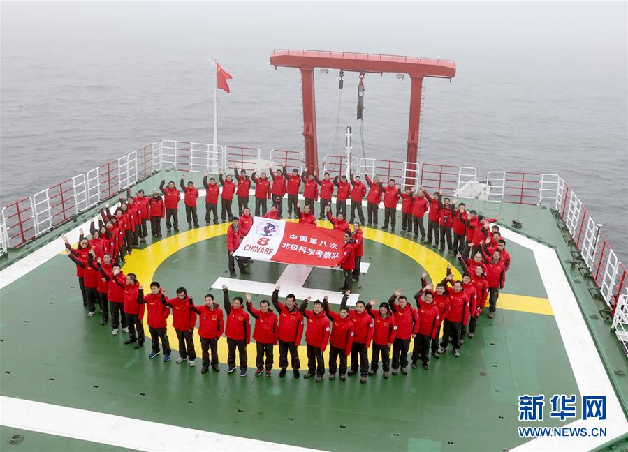 “雪龙”号进入北极圈后,科考队将在楚科奇海国际公海海域进行海洋综合调查,回收一套沉积物捕获器,并完成4至6个冰站的多学科综合考察。图为科考队员在“雪龙”号上围成圆圈合影。新华社记者 郁琼源 摄 图片来源:新华网