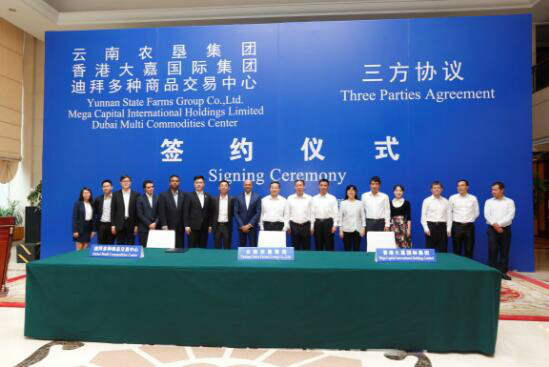 2017年7月19日,香港大嘉国际集团、云南农垦集团与迪拜多种商品交易中心(Dubai Multi Commodities Centre,DMCC)在昆明签订三方合作协议,正式推动中国咖啡豆中东贸易规划落地。中国咖啡豆出口中东市场的最佳通道,在大嘉集团及其合作伙伴的努力下,自此全面打开。