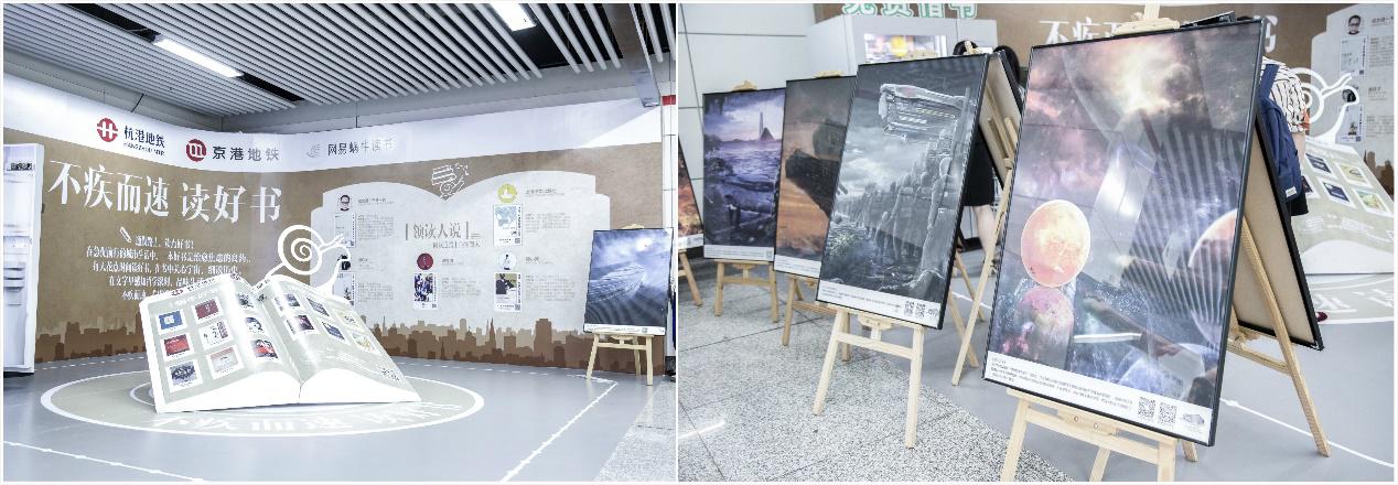 在启动仪式上,一场以《三体》为主题的科幻互动活动吸引了不少市民的注意,现场邀请到了《三体》舞台剧的执行导演、网易蜗牛读书的领读人李啸鹏来到现场,为市民带来了生动的科幻主题的话题交流,分享了《三体》舞台剧创作背后的趣事,引来了市民的驻足围观。同时,现场不仅有极具视觉震撼力的《三体》原画展,还有外星造型的人偶为市民赠送限量版三体明信片。据悉,根据《三体》改编的舞台剧也将在10月登陆杭城。通过这样一场活动,网易蜗牛读书与杭港地铁、京港地铁开启了此次“不疾而速读好书”地铁读书活动的序幕,为杭州市民带来了一场科幻主题的视觉与文化盛宴,使地铁这个城市地下空间充满了科幻的味道。配合该主题的启动活动,凤起路站点活动区域内还特地开辟了科幻书籍推荐专区,包括《美国众神》、《三体》、《阿西莫夫:永恒的终结》在内的多本科幻经典好书均可免费在线阅读。