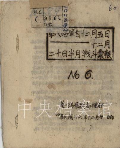 1937年12月20日:第八路军总指挥部关于八路军自十二月五日至二十日半月战斗汇报(节录)