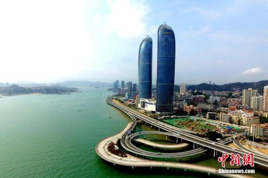 图为“双子塔”大厦,是厦门标志性城市景观之一,也是目前厦门投入使用的最高楼。王东明 摄