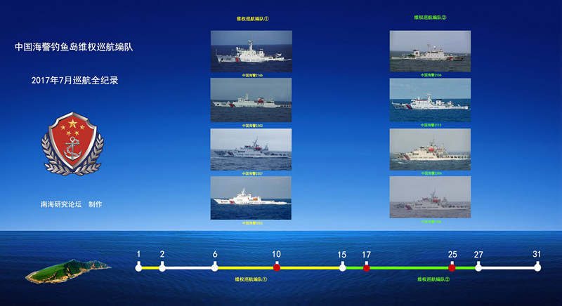 2017年7月中国海警钓鱼岛维权航编队巡航全纪录如下: